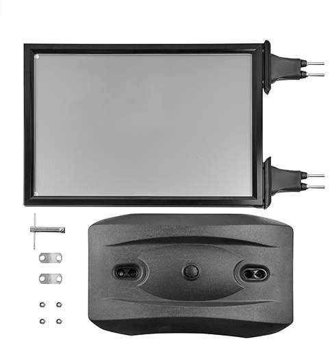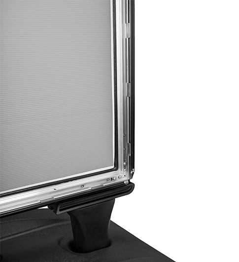 Der WindyPro Black ist mit einer befüllbaren Basis ausgestattet, die mit Wasser oder Sand gefüllt werden kann, um maximale Stabilität zu gewährleisten. Sein schwarze Aluminiumrahmen und die Federung zwischen dem Rahmen und der Basis sorgen für zusätzliche Haltbarkeit und ein modernes Erscheinungsbild. Die Federung, die in der Farbe Schwarz gehalten ist, trägt dazu bei, dass der Rahmen auch bei starkem Wind flexibel bleibt, wodurch das Display optimal geschützt ist.