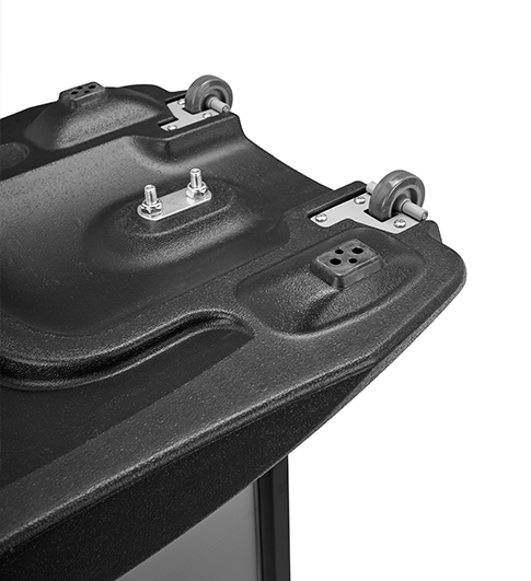 Um Schäden durch extreme Wetterbedingungen zu vermeiden, empfehlen wir, den Kundenstopper bei starken Stürmen ins Haus zu holen. Die an der Basis angebrachten Rollen erleichtern den Transport ins Innere. Bitte beachten Sie, dass wir für Schäden, die durch Umwetter verursacht werden, keine Haftung übernehmen können.